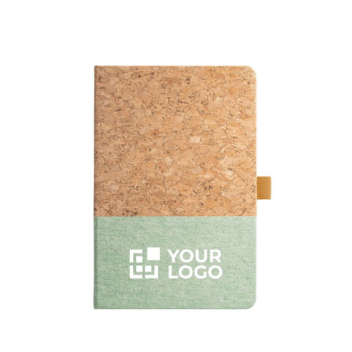 Nachhaltiges liniertes A5-Notizbuch mit Einband aus Kork und Leinen
