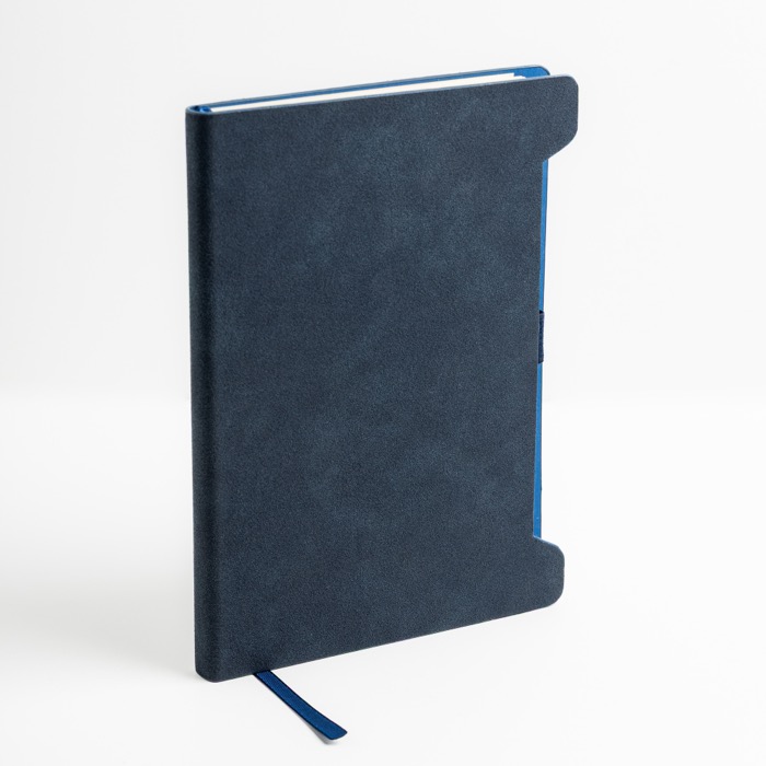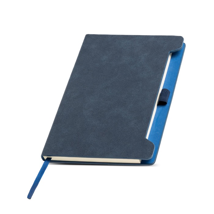 A5-Notizbuch mit weicher RPU-Hülle und Stifthalter. Enthält 96 glatte, FSC-zertifizierte Blätter in Elfenbeinfarbe. Die abgerundeten Ecken sorgen für eine angenehme Haptik, während der seitliche Halter den Stift schützt und griffbereit hält.