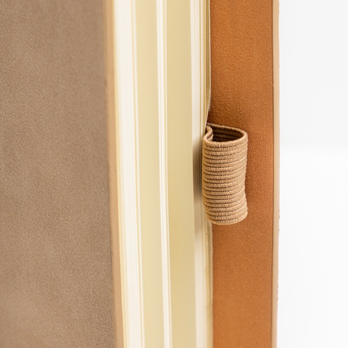 Notizbuch mit weicher Abdeckung und Halterung für einen Stift, mit 96 blanko Seiten in Elfenbeinfarbe, ideal für Alltag und Präsentation.
