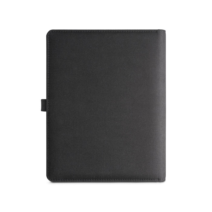 Schreibmappe A5 aus 300D rPET mit einem integriertem kabellosen Ladegerät. Dieses hat eine Akku-Kapazität von 5.000 mAh, eine Ladeleistung von 10W und verfügt über einen Eingang/Ausgang 5V/2.1A. Enthält einen Typ C USB Ladekabel. Die Mappe beinhaltet ein Fach für einen Smartphone bis zu 6,5", drei Kartenfächer, vier LED Leuchten, einen Knopf on/off, Halter für Kugelschreiber (nicht enthalten), Smartphone und USB Kabel, einen Notizblock mit schwarzem Hardcover und 64 linierten Seiten. Das Papier ist in Elfenbeinfarbe und stammend aus nachhaltiger Forstwirtschaft. Auf der Vorderseite der Schreibmappe ist ein ovales Symbol aufgedruckt, dieser zeigt die Ladefläche an. Geliefert in einer Geschenkschachtel.
