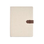 A4-Portfolio aus recyceltem Baumwollcanvas mit Druckknopfverschluss, Tablet-Hülle, Notizblock, Stifthalter und Kartenfächern. Ideal für Ihre Mitarbeiter.