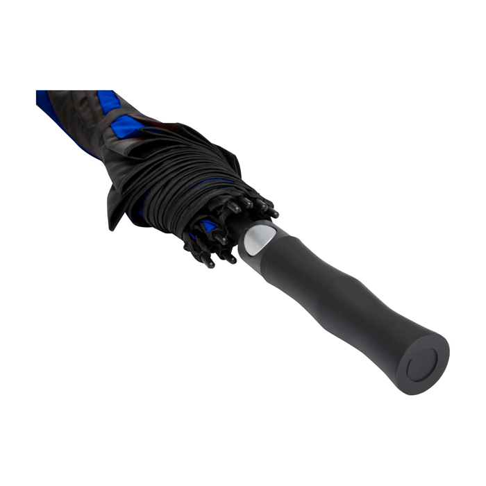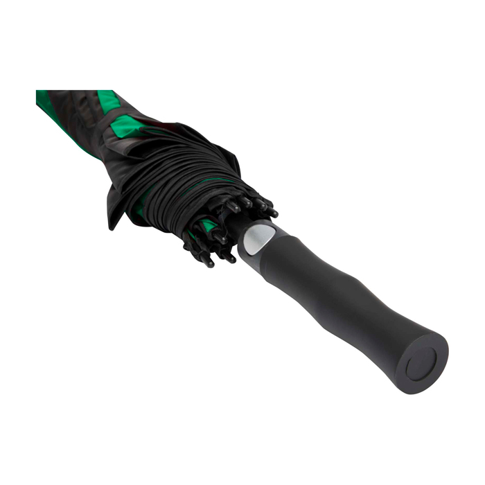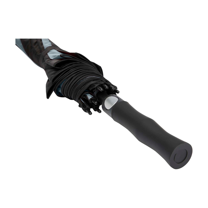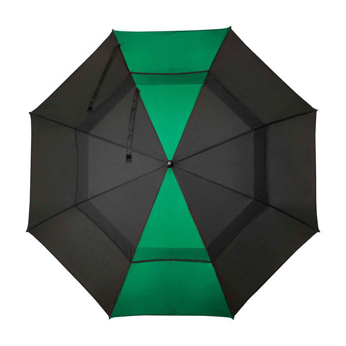 Windresistenter Golf-Regenschirm mit einer großen 55-Zoll-Polyester-Bespannung, die bequem mehreren Personen Schutz bietet. Der Schaft und das Gestell aus Fiberglas sorgen für hohe Flexibilität und außergewöhnliche Widerstandsfähigkeit selbst bei starkem Wind. Ausgestattet mit einem Kunststoffgriff und automatischer Öffnung per Knopfdruck, lässt er sich schnell und bequem bedienen. Die kontrastierenden Paneele bieten eine ideale Fläche zur hervorhebung eines Logos, wodurch der Schirm perfekt für Werbezwecke, Events oder den täglichen Gebrauch geeignet ist.