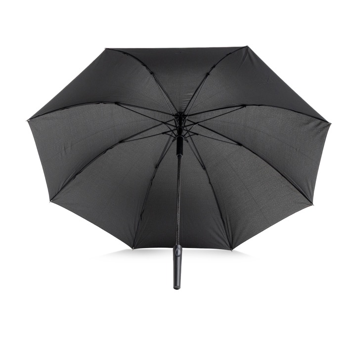 Automatikschirm aus RPET mit Kohlefaserrahmen – leicht und widerstandsfähig. Mit acht Paneelen (Ø 120 cm) für optimalen Schutz bei starkem Regen. Griff im Golfstil für angenehme Handhabung und automatische Öffnung für schnelle Nutzung. Hergestellt aus recyceltem Kunststoff – langlebig, stilvoll und umweltbewusst.