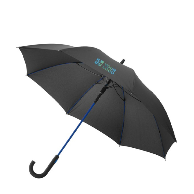 Automatik Regenschirm aus Polyester mit farbigen Fiberglas Speichen.