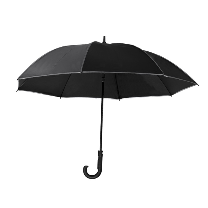 - Schwarzer windfester Regenschirm mit reflektierenden Kanten und 8 Segmenten