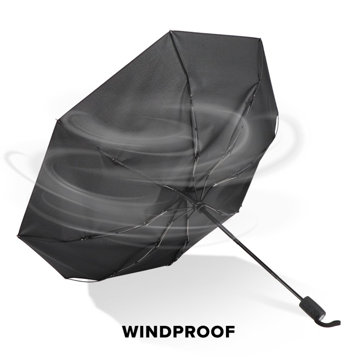 Dieser 21 Zoll Taschenschirm ist für windige Bedingungen ausgelegt und verfügt über ein robustes Gestell aus Fiberglas sowie einen Schirmbezug aus Pongee. Die automatische Öffnungs- und Schließfunktion macht die Handhabung besonders bequem. Eine Hülle zum Verstauen und eine Handschlaufe am Griff sorgen für zusätzliche Sicherheit unterwegs. Der ABS Griff liegt angenehm in der Hand.