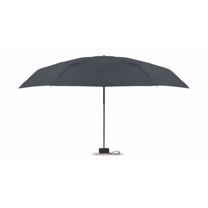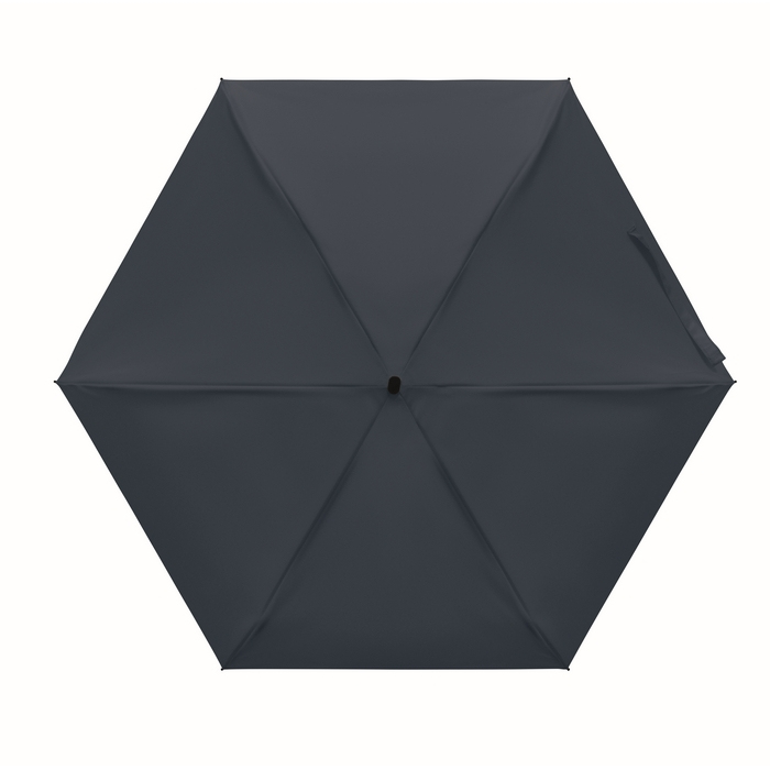 Manueller Regenschirm aus 190T-Pongee mit 5-fach-Faltkonstruktion und passender Hülle für einen ordentlichen Transport. Ausgestattet mit einem Metallgestell und windfesten Fiberglasstreben, konzipiert für den häufigen Einsatz im Freien. Der schwarze Gummigriff mit Handschlaufe verbessert den Halt und erleichtert das Tragen am Handgelenk. Zusammengefaltet hat er ein kompaktes Maß von 17 cm, geeignet für Handtasche, Rucksack oder Handschuhfach. Nützlich als Firmengeschenk bei Veranstaltungen, Geschäftsterminen oder in Willkommens-Kits.