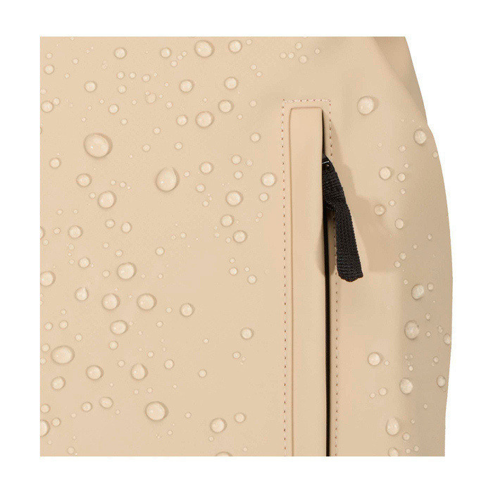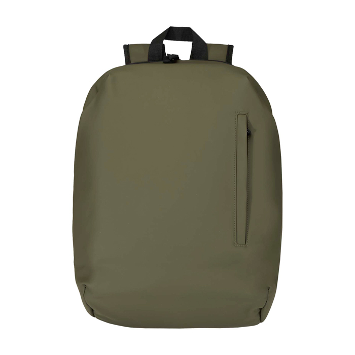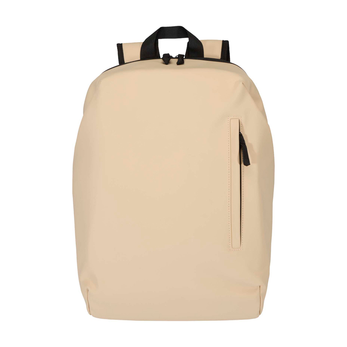Diebstahlsicherer Rucksack mit Außenmaterial aus recyceltem Polyurethan-Kunstleder und passendem Futter aus recyceltem Kunststoff, konzipiert für den geschützten Transport Ihrer Wertsachen im Alltag. Er verfügt über ein 15-Zoll-Laptopfach mit rückseitigem Zugriff, zwei aerodynamische Seitentaschen und eine Fronttasche mit wasserfestem Reißverschluss, damit Sie das Wichtigste griffbereit haben. Das atmungsaktive Rückenteil erhöht den Komfort auf längeren Strecken, und das Design hilft, den Inhalt trocken zu halten. Nützlich für den Arbeitsweg, Geschäftsreisen und Markenveranstaltungen.
