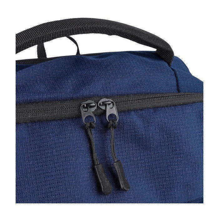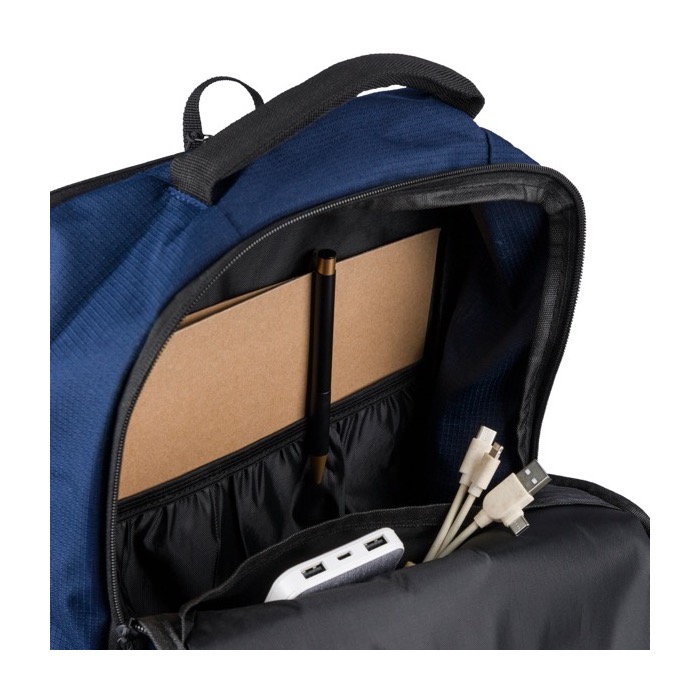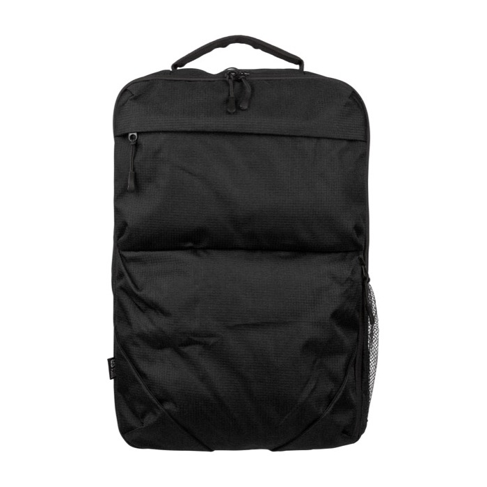 Rucksack aus recyceltem Kunststoff mit strukturierter Oberfläche, ausgelegt für den täglichen Einsatz im Büro und bei Veranstaltungen. Er bietet 20000ml Fassungsvermögen, aufgeteilt in zwei grosse Reissverschlussfächer, davon eines gepolstert für Laptops bis 15 Zoll. Er verfügt über zwei Fronttaschen mit Reissverschluss, eine seitliche Netztasche und einen Tragegriff oben für schnellen Zugriff. Für Komfort sorgen belüftete, verstellbare Schultergurte, ein gepolstertes Rückenteil und eine Trolley-Schlaufe. Praktisch als Firmengeschenk für Teams, Messen oder Markenaktionen.