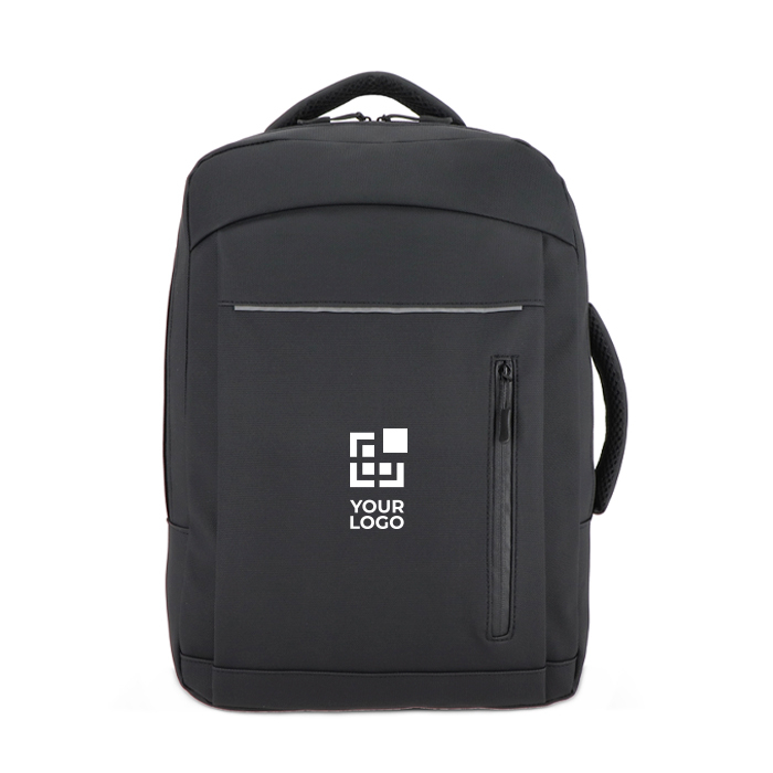 Laptop-Rucksack aus Kunstleder mit 210D-Futter, geeignet für den täglichen Einsatz zwischen Büro, Terminen und Reisen. Er bietet Platz für Laptops bis 15,6 Zoll und sorgt mit einem strukturierten Innenraum für Ordnung. Ausgestattet mit verstellbaren, gepolsterten Schultergurten, einer atmungsaktiven Rückenpartie sowie oberen und seitlichen Tragegriffen für flexible Nutzung. Zusätzlich mit Trolley-Schlaufe, reflektierenden Details, Frontfach mit Reißverschluss und verdecktem Fach für Wertsachen. Eine praktische Option für HR-Maßnahmen und Unternehmensveranstaltungen mit Logo.