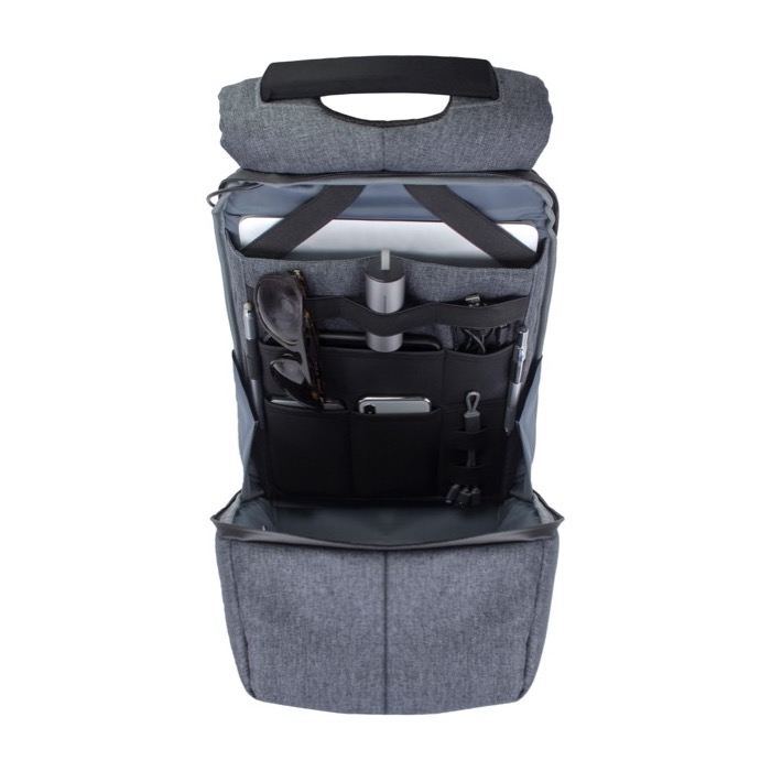 Diebstahlsicherer Rucksack mit TSA Schloss, gepolsterten Fächern, versteckten Taschen und reflektierenden Details. Schützt Wertsachen und stärkt deine Marke.