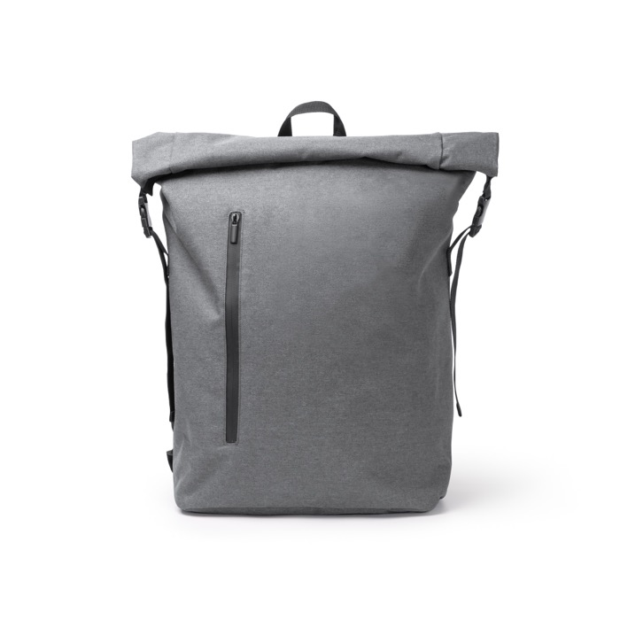 Rucksack aus recyceltem 300D-Polyester mit Kunststoffinnenfutter, ausgelegt für den anspruchsvollen Alltag und mit gutem Schutz vor Spritzern. Er verfügt über wasserdichte Reißverschlüsse sowie ein Hauptfach mit erweiterbarer Öffnung, Klettverschluss und Anpassung über seitliche Schnallen. Innen befinden sich ein Laptopfach für Geräte bis 15” und zwei Zusatzfächer für Zubehör. Hinzu kommen ein großes Außenfach mit Reißverschluss, gepolsterter Rücken und gepolsterte Schultergurte mit reflektierenden Details sowie ein Trolleyband. Empfohlen für Unternehmensreisen, Messen und den Büroalltag.