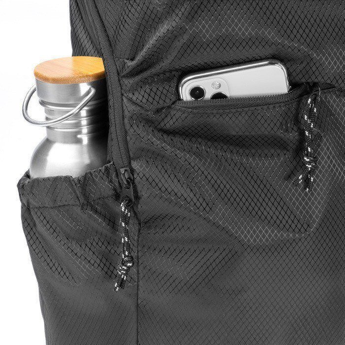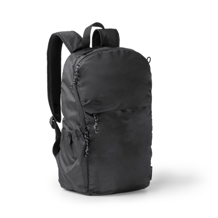Rucksack aus recyceltem Kunststoff im Ripstop-Stil, mit wasserabweisendem Gewebe für den täglichen Einsatz unterwegs. Er verfügt über ein Hauptfach mit Reißverschluss und ein Innenfach mit elastischer Anpassung zum Transport von elektronischen Geräten bis zu 9”. Dazu kommen zwei äußere Fronttaschen mit Reißverschluss zum Organisieren von Kabeln, Schlüsseln oder Unterlagen. Seitlich befindet sich ein elastisches Fach für Flaschen oder Trinkflaschen. Gepolsterte Schultergurte und ein gepolsterter Rücken sorgen für bequemeren Transport. Nützlich für Personalmaßnahmen, Veranstaltungen und Vertriebsteams.