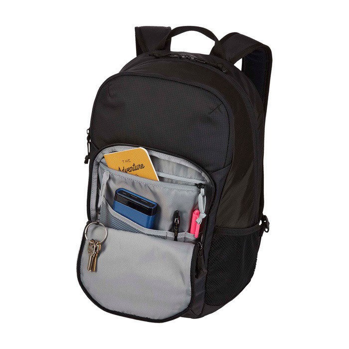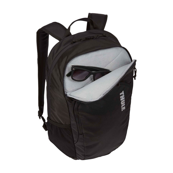 Die Thule Achieve Laptop-Rucksack bietet maximalen Schutz und optimale Organisation für den Alltag. Das gepolsterte SafeEdge-Fach schützt Laptops bis 15,6" oder MacBooks bis 15", zusätzlich gibt es ein separates Fach für ein 10,1"-Tablet. Wertgegenstände wie Sonnenbrille oder Smartphone sind sicher im außenliegenden, gepolsterten Reißverschlussfach mit weichem Innenfutter verstaut. Weitere Details: ein schnell zugängliches Reißverschlussfach, ein Innenfach aus Mesh mit Stiftehalter und Schlüsselclip, sowie zwei seitliche Mesh-Taschen für Flaschen oder Zubehör. Der gepolsterte Rücken mit Belüftungskanälen und die gewebten Tragegriffe sorgen jederzeit für angenehmen Tragekomfort.