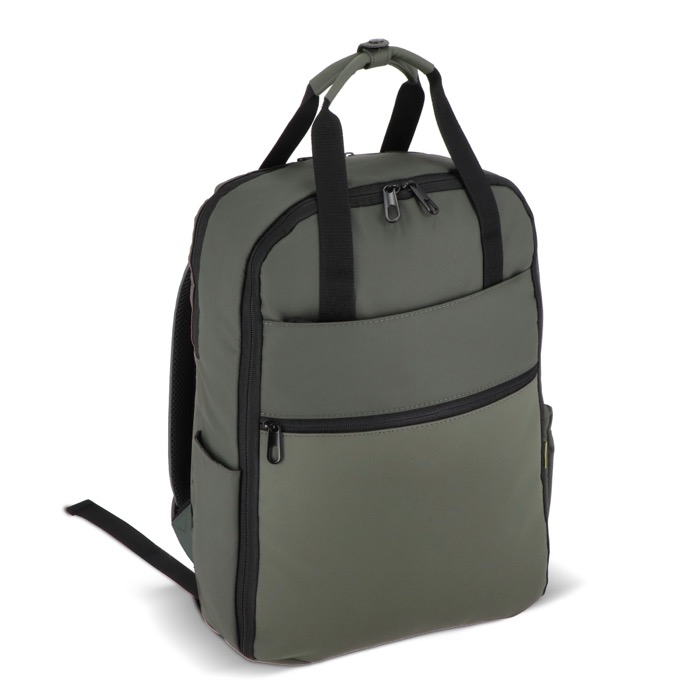 Rucksack für den täglichen Einsatz mit geräumigem Design zur Organisation von Unterlagen und Zubehör. Er verfügt über mehrere Fächer zur Trennung von persönlichen Gegenständen und Arbeitsmaterial sowie über ein gepolstertes Laptopfach zum Schutz unterwegs. Die rückseitige Trolley-Schlaufe erleichtert das Reisen ohne zusätzliches Tragen. Eine praktische Option für Vertriebsteams, Messen oder als Willkommensgeschenk.