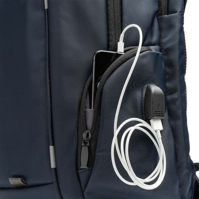 Rucksack mit gepolstertem Fach für den Laptop und USB Anschluss, entwickelt für den täglichen Weg und um Ihre Geräte jederzeit geladen und geschützt zu halten.