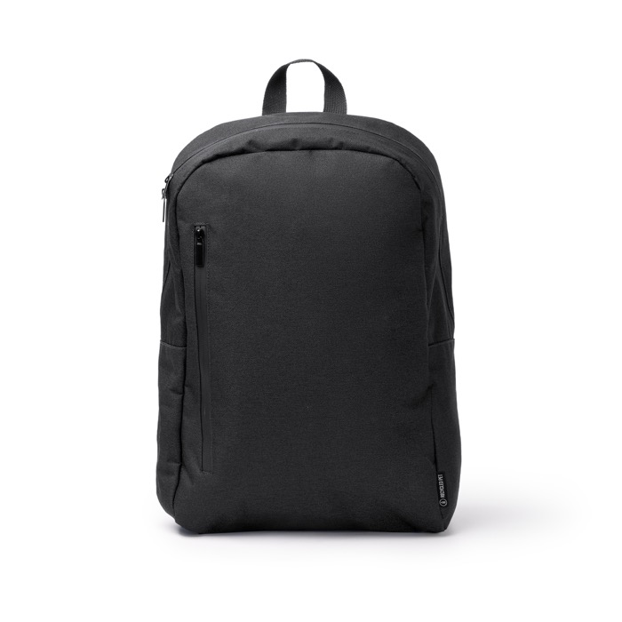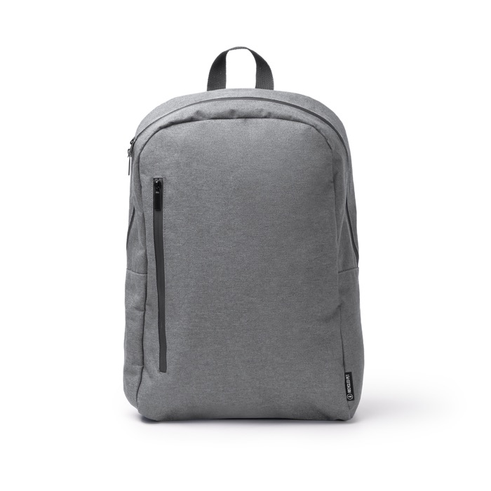 Rucksack aus recyceltem Kunststoff mit 300D-Gewebe und Kunststoffbeschichtung, die hilft, Flüssigkeiten abzuweisen. Er verfügt über wasserdichte Reißverschlüsse und ein Hauptfach mit doppeltem Verschluss, um den Alltag zu organisieren. Enthalten sind ein Innenfach für Laptops bis 15" sowie zwei zusätzliche Fächer für Zubehör, außerdem ein großes Außenfach mit dicht schließendem Reißverschluss. Dazu kommen seitliche Fächer für Flaschen, gepolsterter Rücken und gepolsterte Schultergurte, ein reflektierendes Band und eine Trolley-Schlaufe. Nützlich für Markenaktionen auf Messen, beim Onboarding oder auf Geschäftsreisen.