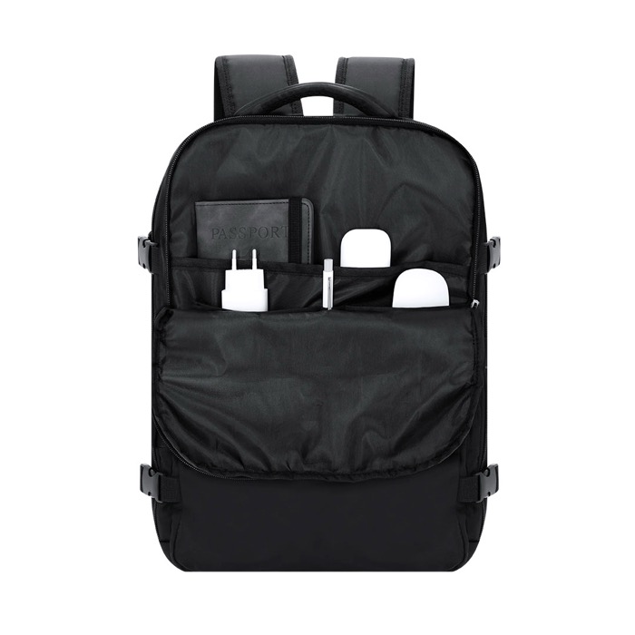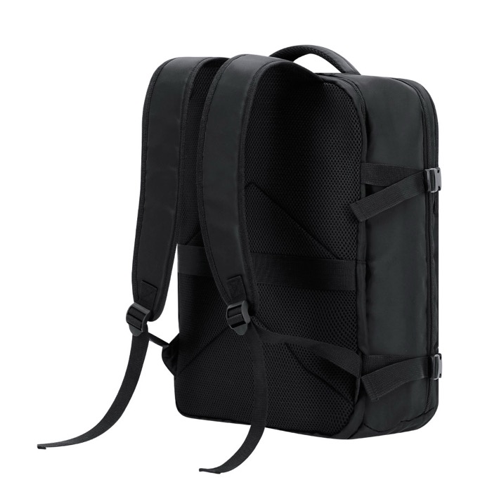 Vakuumrucksack aus weichem Nylon mit integrierter 35W-Pumpe, um Kleidung zu komprimieren und Platz zu optimieren. Enthält ein ausziehbares Hauptfach mit innerer Vakuumtasche sowie ein drittes Fach mit Organizer und mehreren Aufbewahrungsmöglichkeiten. Zusätzlich gibt es zwei Fronttaschen für schnellen Zugriff und Seitentaschen mit Verstellriemen, um die Last zu stabilisieren. Gepolsterter Rücken und gepolsterte Schultergurte für hohen Tragekomfort, Trolley-Band und Tragegriff oben. Praktische Lösung für Geschäftsreisen, Messen und tägliche Mobilität mit Logo.