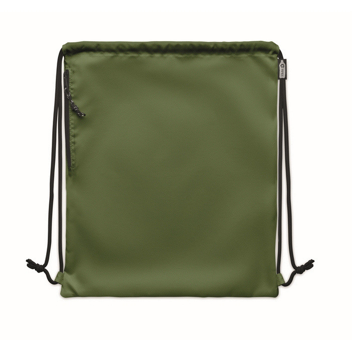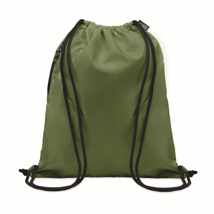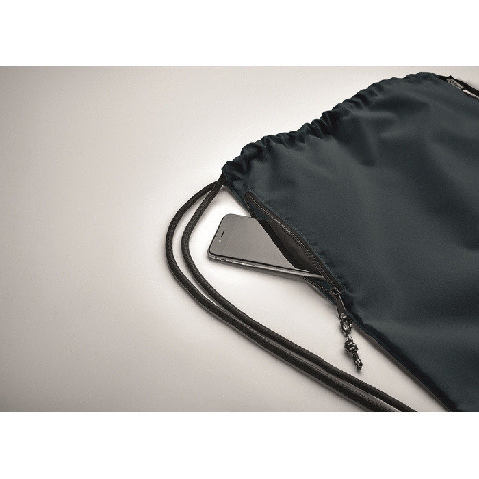 Turnbeutel mit dickem Kordelzug aus RPET mit Reißverschlusstasche