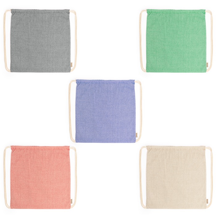 Lassen Sie Ihre Marke auf jedem Firmenevent sichtbar werden mit diesem Baumwollbeutel mit Kordelzug aus recyceltem Material und meliertem Finish.
