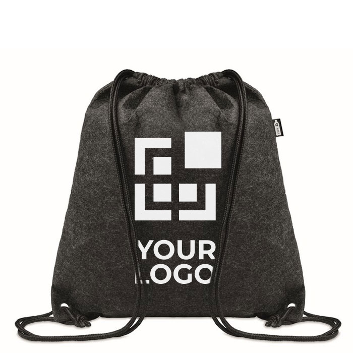 RPET-Filz-Rucksack mit Kordelzug und festen Ecken.