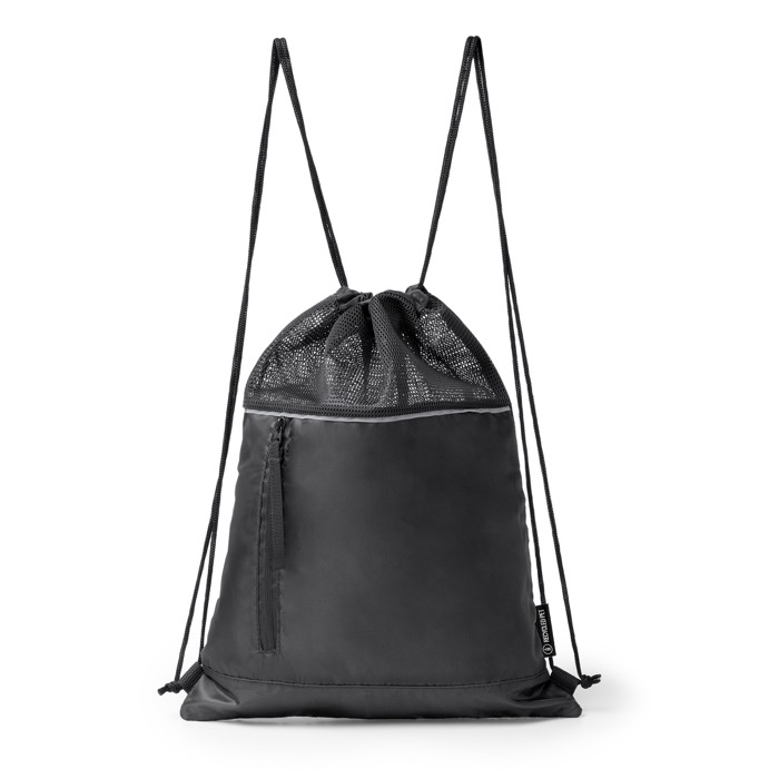 Turnbeutel mit Kordeln aus recyceltem Kunststoff, 210D-Finish und Netzpaneelen oben und auf der Rückseite für bessere Belüftung. Er verfügt über eine äußere Fronttasche, in der Sie kleine Gegenstände verstauen und tagsüber griffbereit haben. Der vordere Reflexstreifen verbessert die Sichtbarkeit bei Wegen in der Stadt, und der Reißverschlussanhänger der Tasche ist farblich auf den Beutel abgestimmt. Leicht und bequem – ideal als Geschenk bei Veranstaltungen, Messen oder internen Maßnahmen der Personalabteilung.