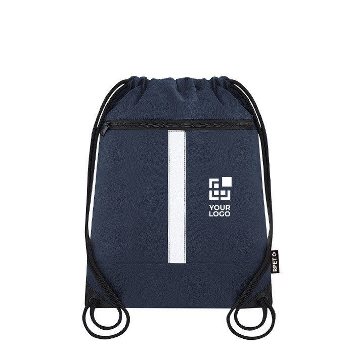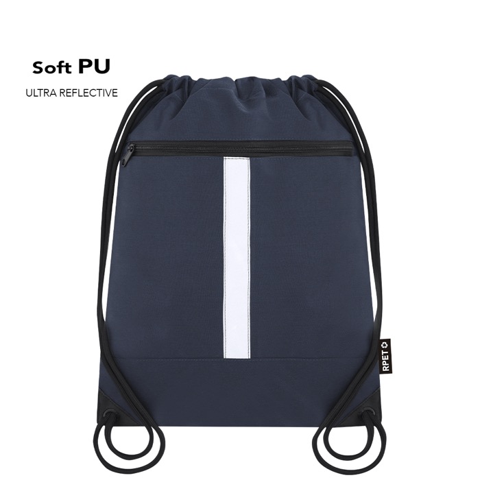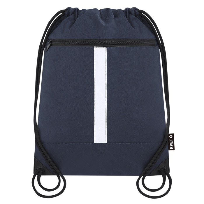 RPET-Kordelzugrucksack mit Fronttasche und reflektierendem Band