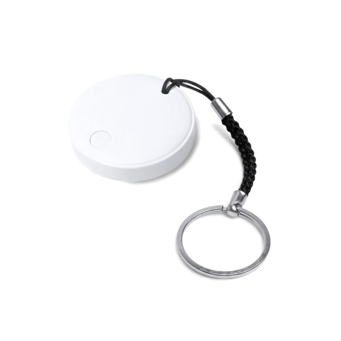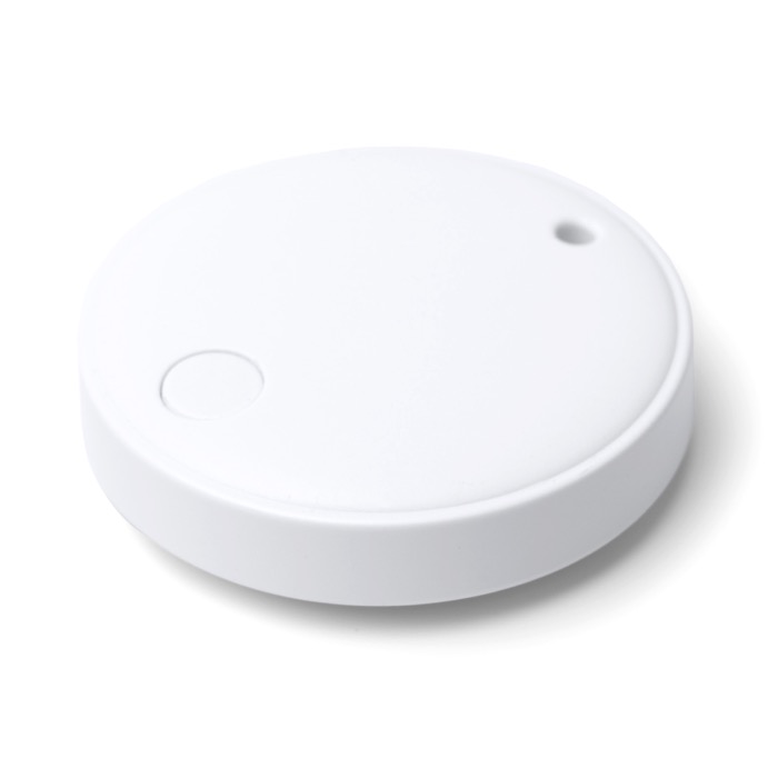 Anti-Verlust-Tracker aus Kunststoff mit Schutz vor Wasser und integriertem Schlüsselanhänger, zum Mitnehmen an Schlüsseln, Rucksäcken oder Aktentaschen. Er lässt sich über eine App und eine Bluetooth-Verbindung mit iOS- und Android-Mobiltelefonen koppeln und erleichtert so das Auffinden von Gegenständen aus der Entfernung. Er funktioniert mit Batterie und gibt ein akustisches Signal aus, um ihn schnell zu orten, wenn er nicht sichtbar ist. Inklusive Metallring und Trageschlaufe für eine bequeme Nutzung im Alltag. Geeignet für Markenaktionen auf Messen und für Vertriebsteams.