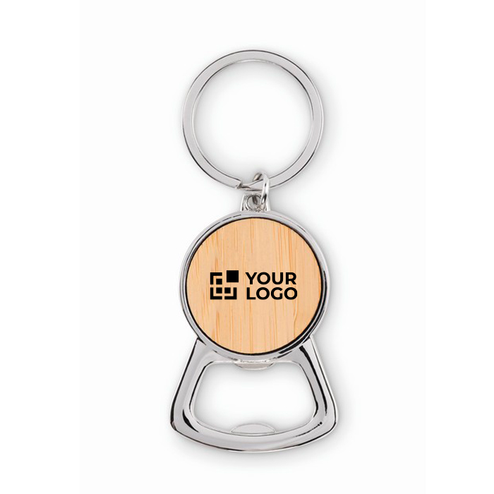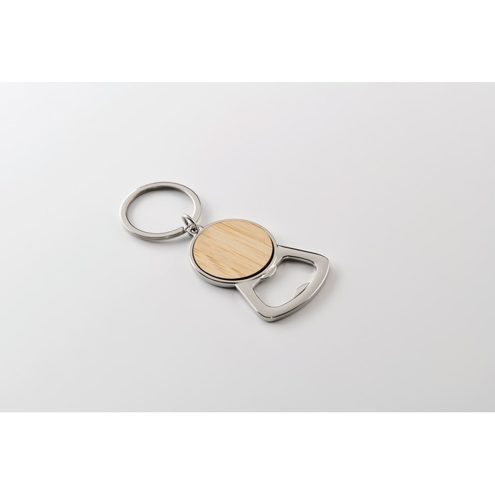 Metall-Schlüsselanhänger mit Flaschenöffner und Bambusanhänger