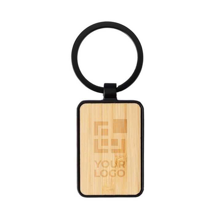 Rechteckiger Schlüsselanhänger aus Bambus mit Zinklegierung bedrucken