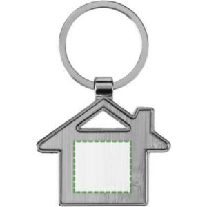 Schlüsselanhänger aus Zinklegierung in Form eines Hauses, ideal für Immobilienfirmen. Vermitteln Sie ein seriöses Image, indem Sie Ihr Logo darauf gravieren.