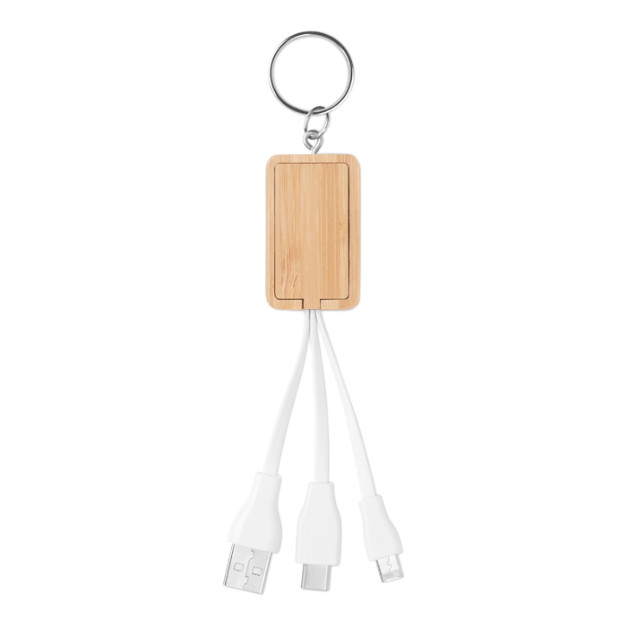 Schlüsselanhänger aus Bambus mit USB-Kabeln als Werbeartikel
