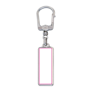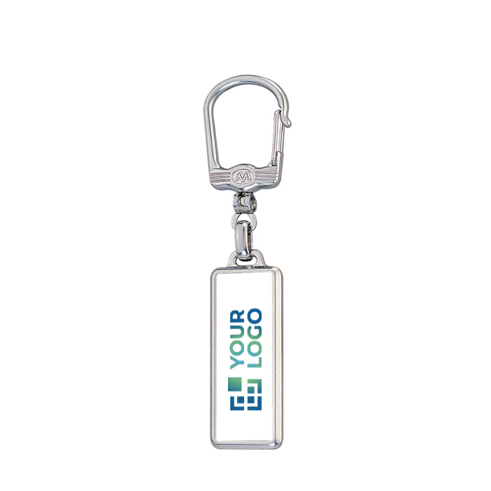 Rechteckiger Metallschlüsselanhänger mit Karabiner und doppelseitigem Doming.