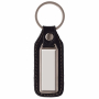 Rechteckiger Metallschlüsselanhänger mit Logo auf Leder