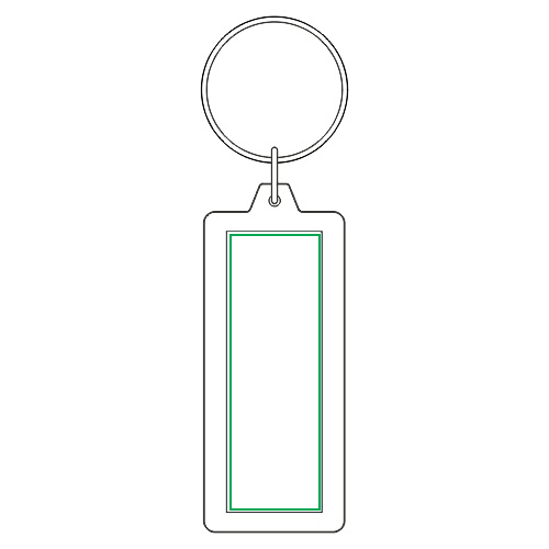 Schlüsselanhänger aus Acryl in rechteckiger Form. Das Logo kann auf der Papiereinlage (18 x 50 mm) beidseitig bedruckt werden. Mit Acrylabdeckung.