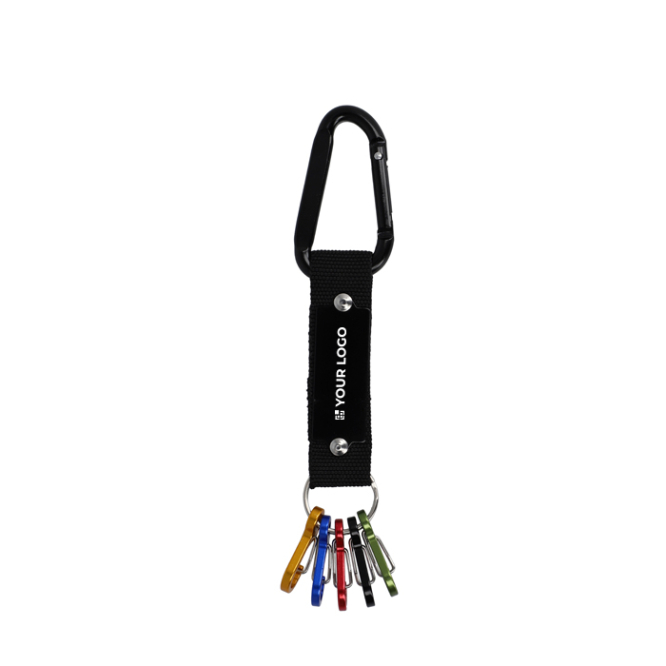 Schlüsselanhänger mit Karabiner aus recyceltem Aluminium, mit 5 Karabinerhaken, um daran die Schlüssel zu transportieren.