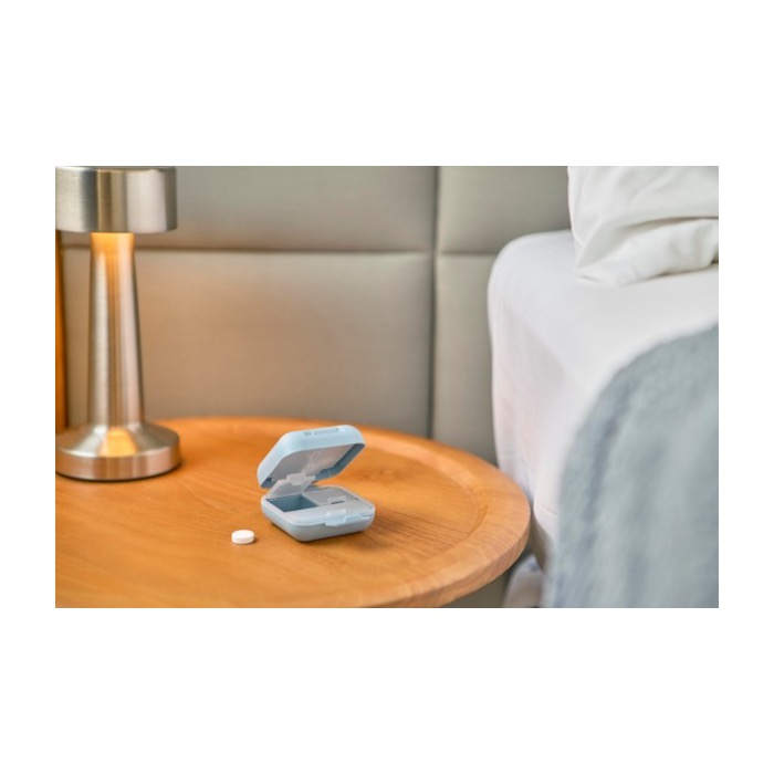 Pillendose bedrucken mit Fach und Tablettenschneider