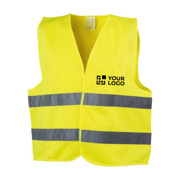 Neonfarbene Sicherheitsweste mit Reflektor-Streifen als Werbeartikel
