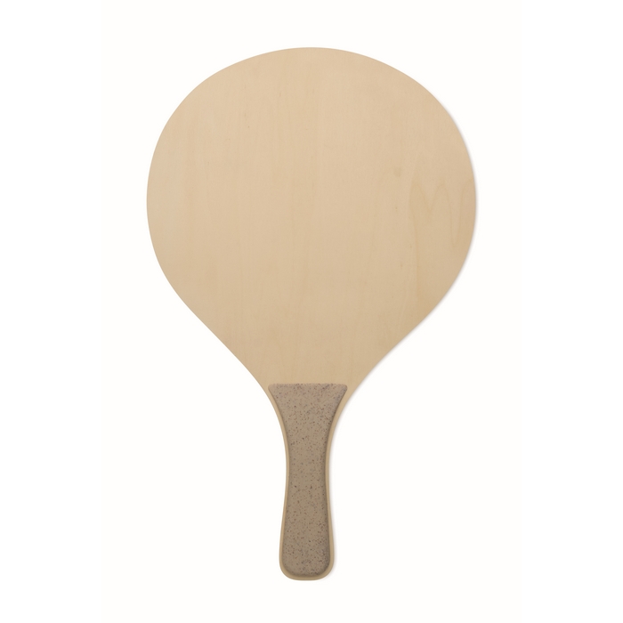 Strand-Schläger aus Holz mit Spielen und RPET-Netztasche