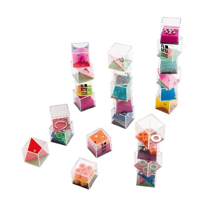 24 kleine Geduldspiele jeweils in einem Würfel als Werbemittel
