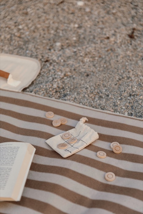 Tic-Tac-Toe-Spiel aus Holz mit Brett in Baumwolltasche als Merchandsing