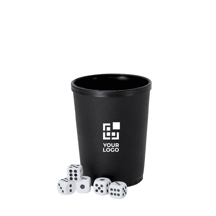 Würfelspiel mit Kunststoffbecher und rauer Textur-Oberfläche, entwickelt für den häufigen Einsatz im Büro oder bei Veranstaltungen. Der Becher hilft Ihnen, die Würfel geordnet zu schütteln und zu werfen, während das Material eine gute Abriebfestigkeit und einen sicheren Griff bietet. Enthält 5 Würfel, sofort spielbereit ohne zusätzliche Vorbereitung. Praktische Größe zum Verstauen in einer Schublade oder zum Transport in einer Tasche. Eine nützliche Option, um Pausen zu beleben, Teambuilding-Aktionen zu unterstützen oder Unternehmensgeschenke mit Druck zu gestalten.