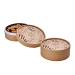 Kraftbox mit 3 Weihnachtssüßigkeiten: in Karamell getunkte Erdnüsse, Mandeln in Milchschokolade mit einem Hauch von Zimt und Rosinen in weißer Schokolade mit dezenten Kaffeenoten (insgesamt 113 g).