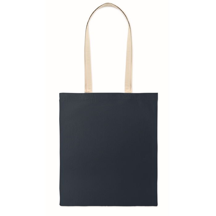 Einkaufstasche aus Baumwolle mit 140 g/m², mit langen Henkeln in Naturfarbe und kontrastfarbenem Taschenkörper zur optischen Abgrenzung des Designs. Sie bietet ein praktisches Format für den Alltag und ein leichtes Gewebe, das den Transport erleichtert, wenn sie leer ist. Die Henkel ermöglichen ein bequemes Tragen über der Schulter, auch auf längeren Wegen. Geeignet für Merchandising-Aktionen, Willkommenspakete, Messen sowie die Ausgabe von Unterlagen oder Unternehmensmaterial.
