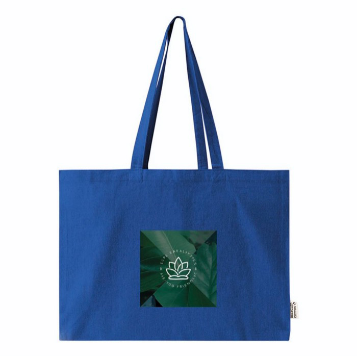 Tasche aus recycelter Baumwolle (220 g/m²) mit extra langen Oversize-Henkeln, damit sie bequem über der Schulter getragen werden kann. Sie verfügt über eine Bodenfalte, die mehr Volumen und bessere Standfestigkeit bietet, wenn Kataloge, Kleidung oder Büromaterial transportiert werden. Das Gewebe fühlt sich griffig an und wirkt hochwertig für Markenaktionen. Sie trägt bis zu 9 kg und ist für den wiederholten Einsatz im Alltag gedacht. Eine praktische Option für Messen, Unternehmensveranstaltungen und Ausgaben am Point of Sale mit Ihrem Logo.