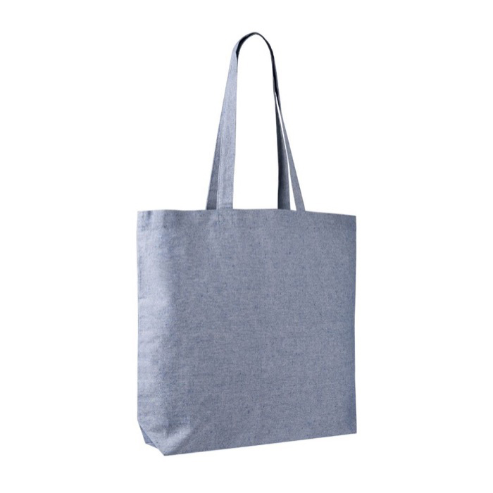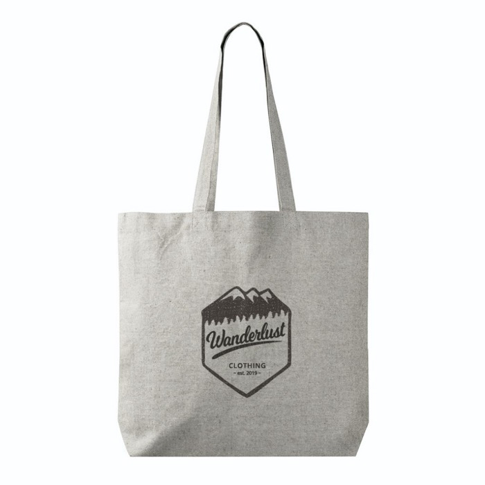 Vielseitige Tasche aus recycelter Baumwolle und Polyester, 220 g/m², REACH-zertifiziert, die Ihr Unternehmen positiv auf Messen präsentiert.