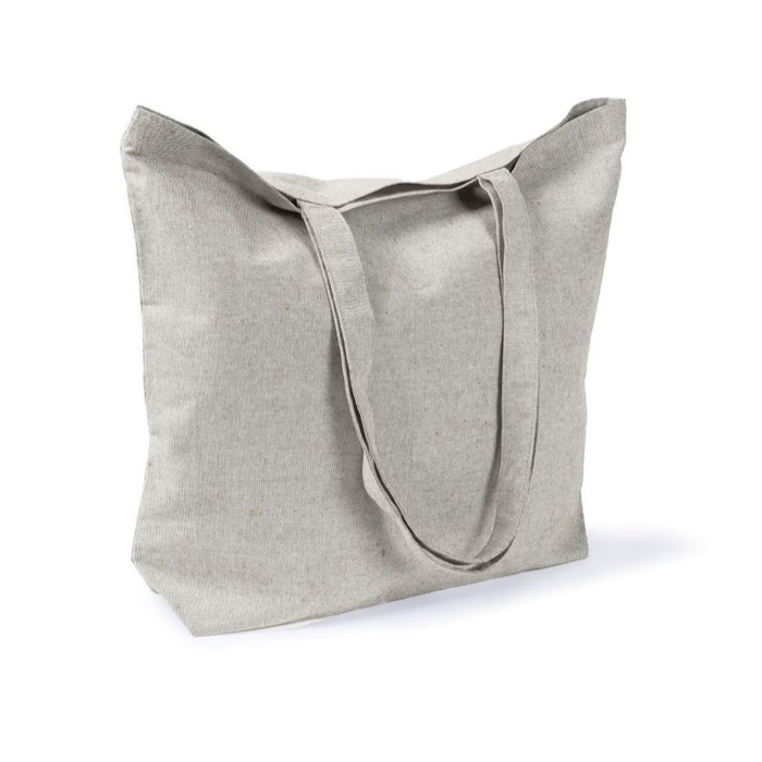 Tote-Bag aus recycelter Baumwolle und Polyester, 220 g/m², zusätzlich REACH-zertifiziert.