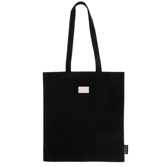 Schwarze Tasche mit langen Henkeln, aus 100 % recycelter Baumwolle mit 180 g/m2.
