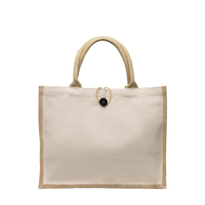 Tasche aus Baumwolle und Jute mit Knopfverschluss und Henkel, 310 g/m2