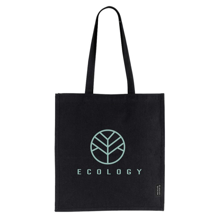 Stofftasche mit langen Henkeln aus recycelter Baumwolle, 180 g/m2 mit GRS-Zertifikat. Diese bietet Widerstandsfähigkeit und Nachhaltigkeit.